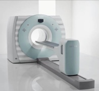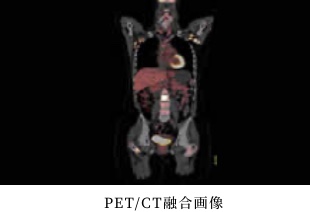 PETとは、がん細胞が正常の細胞に比べて多くのブドウ糖を取り込むという性質を利用して、ぶどう糖に放射線を放出する物質を付けた薬剤(放射性薬剤)である18F-FDGを用いた、核医学検査の一種です。放射性薬剤を体内に投与し、画像化します。それにCTを組み合わせた検査がPET/CT検査です。PETによるぶどう糖代謝などの機能情報とCTによる臓器のかたちを画像化する形態情報の両面から病気を発見することが出来ます。 PET/CT検査では、頭部から膝上までの全身を一度に調べます。